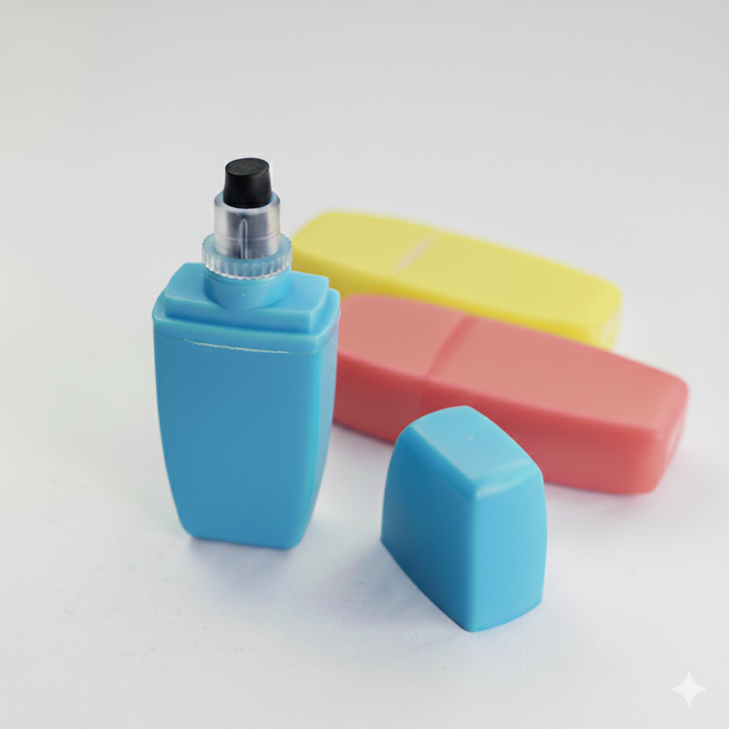 Resaltador de cera con tapa removible. No se seca. De 5.5 x 2 cm. Funciona para las referencias: SET TWIN / SET HANDY – Impresion: Tampografia Tamano area impresa: 3.5 x 1.4 cm – Caja: 38x26x33 1000 unidades 8.3 KG