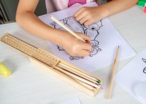Set de 8 colores en caja de madera, la tapa es una regla de 19 cm || Material: Madera || Tamaño: Diámetro de 0 cm