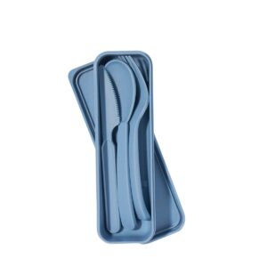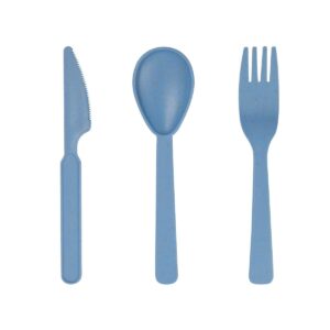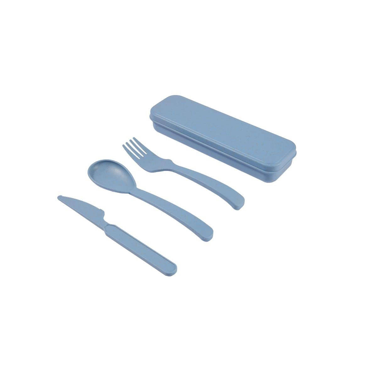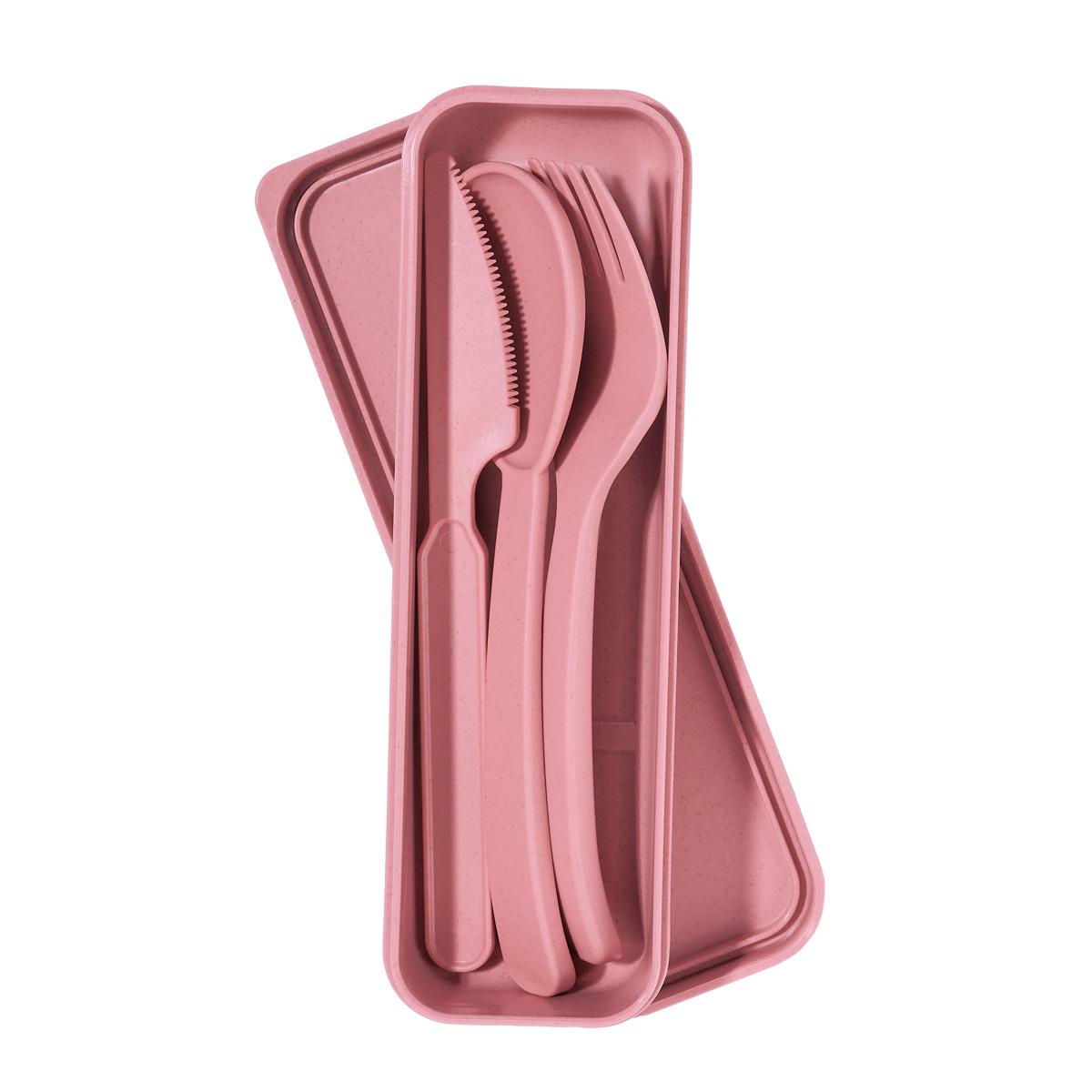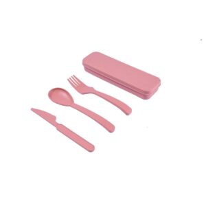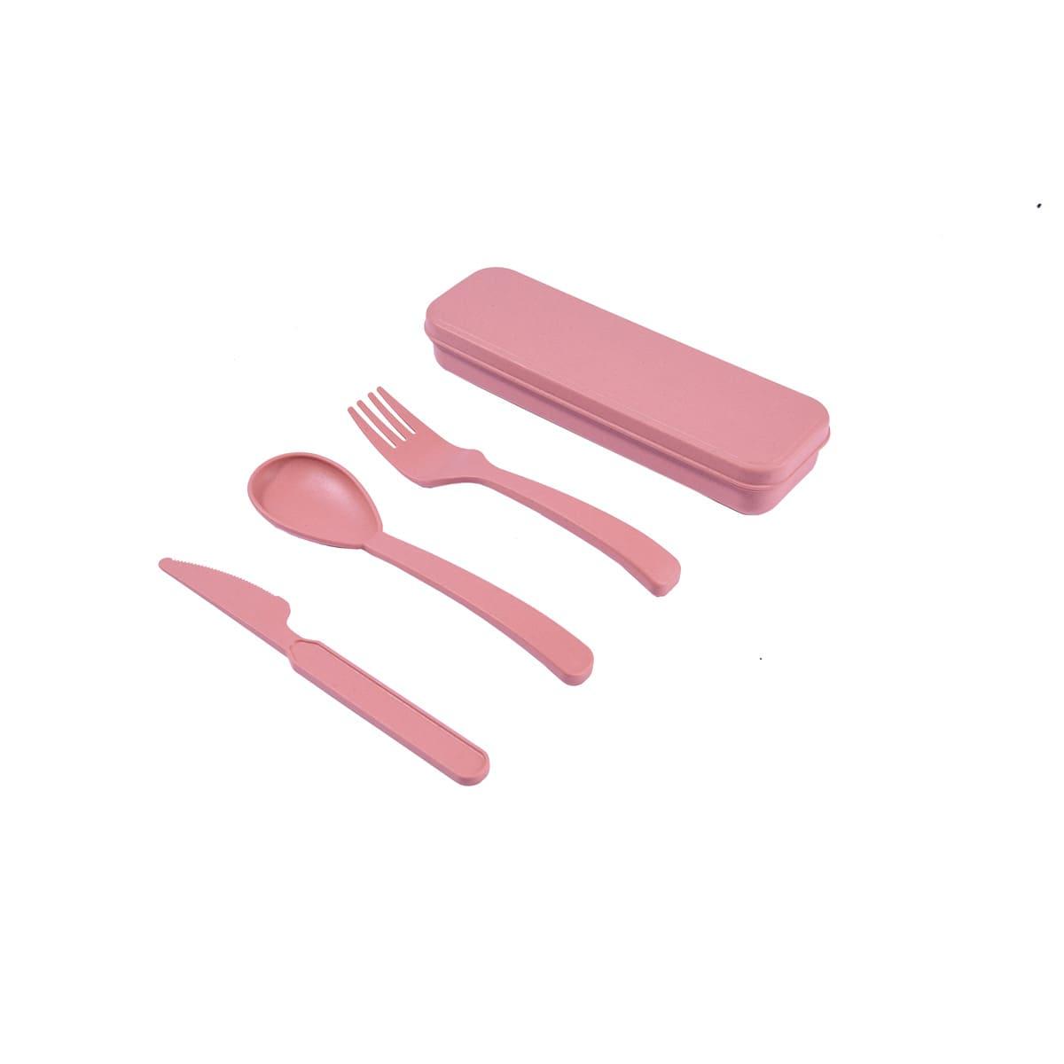 Set de cubiertos portatil material eco-friendly. Contiene cuchara, tenedor, cuchillo y estuche de almacenamiento. Liviano y facil de transportar. Adecuado para lonchera escolar, almuerzo de trabajo, viajes etc || Material: Plástico / Fibra de Trigo || Tamaño: 17.4 x 5.5 x 3 cm