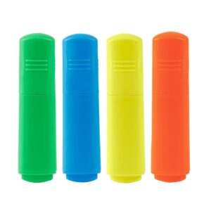 Incluye 4 marcatextos en colores azul, amarillo, verde y naranja, en un practico estuche ecologico con ventana. Diseno compacto, ideal para oficina o escuela || Material: Plástico || Tamaño: 7 x 7.2 x 1.8 cm Caja / 1.6 x 7 cm Marcador