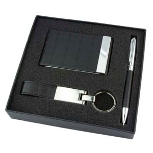 Incluye llavero, tarjetero, boligrafo y caja de regalo || Material: Curpiel / Metal || Tamaño: 2 x 12.7 cm Llavero / 1 x 13.4 cm Bolígrafo / 6.2 x 9.8 cm Tarjetero