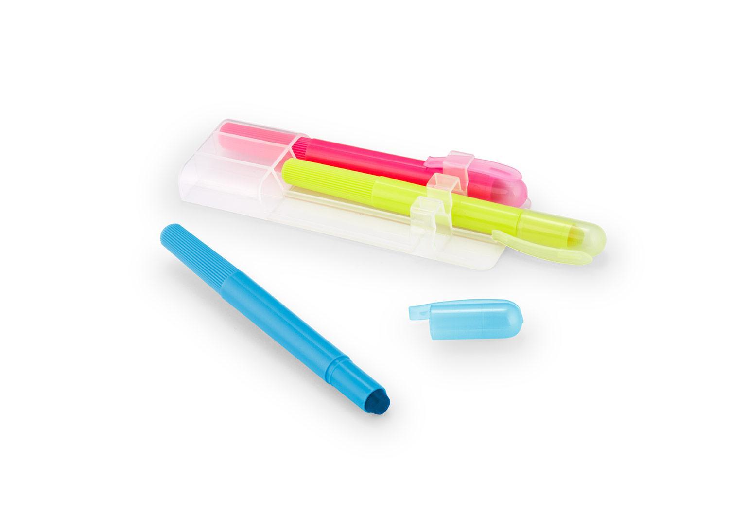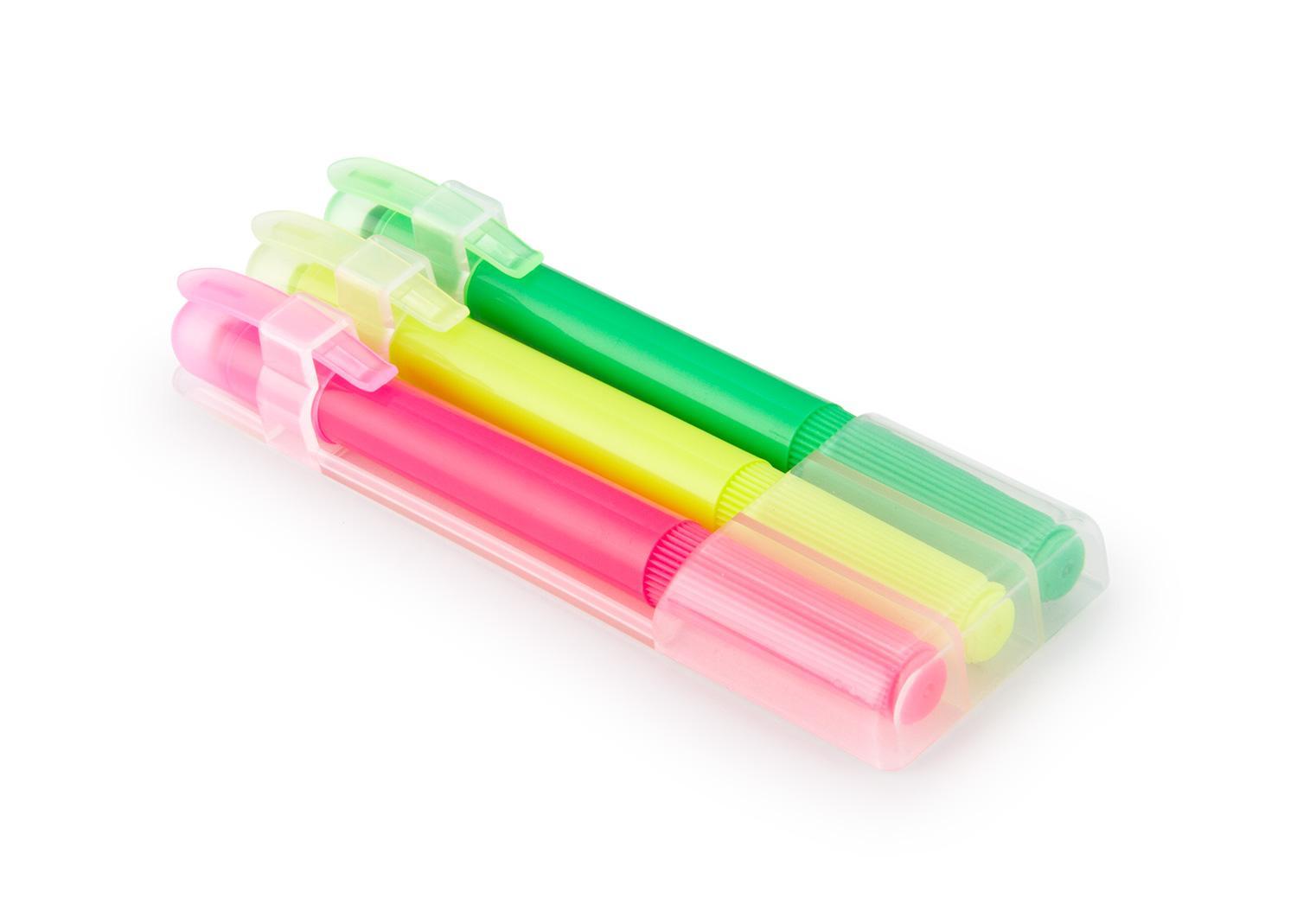 Set de 3 resaltadores en parafina. No se seca. Con tapa y clip. Sistema Twist || Material: PP || Tamaño: 4.30 x 13.10 x 2.00 cm