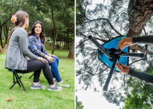 Silla plegable de 3 patas, incluye bolsa de transporte con reata para cargar y cordon de ajustar. Capacidad: Soporta hasta 80 Kg de peso || Material: Poliéster 600D 100% con recubrimiento de PVC. Bolsa de transporte en Poliéster 210D 100 || Tamaño: 13.00 x 58.00 x 13.00 cm