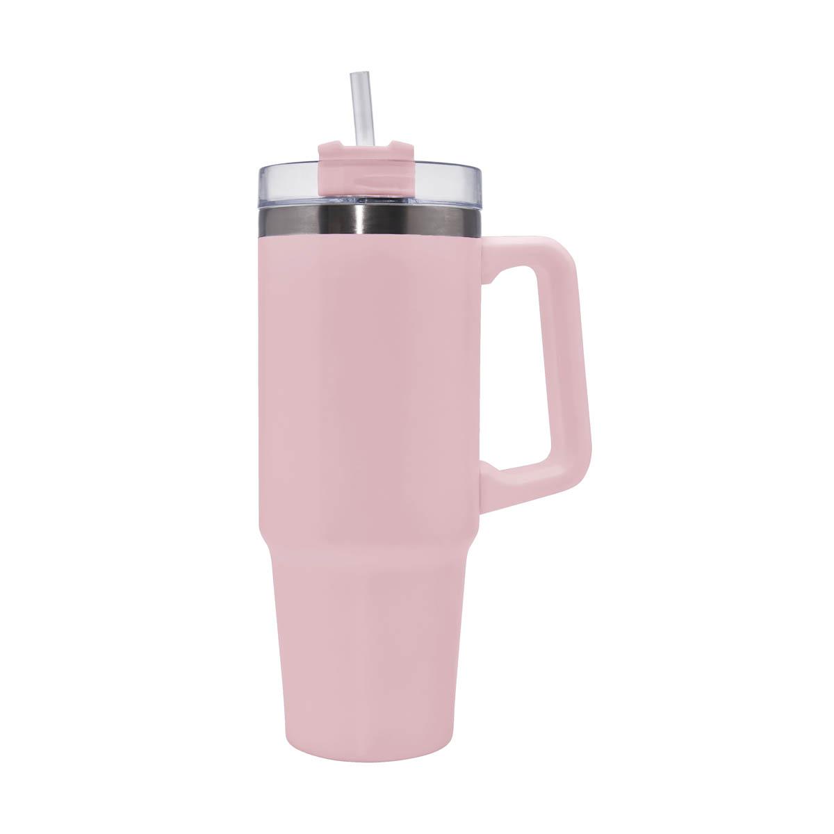 Doble pared. Cerrado al vacio. Pared interna y externa acero inoxidable. Tapa de plastico con cierre de rosca y sobretapa giratoria de tres posiciones con ranura para popote. Incluye popote y asa de plastico. Mantiene temperatura caliente 6 hrs y temperatura fria 8 hrs aproximadamente. Incluye caja individual || Material: Acero Inoxidable / Plástico || Tamaño: 6.7 x 23 cm