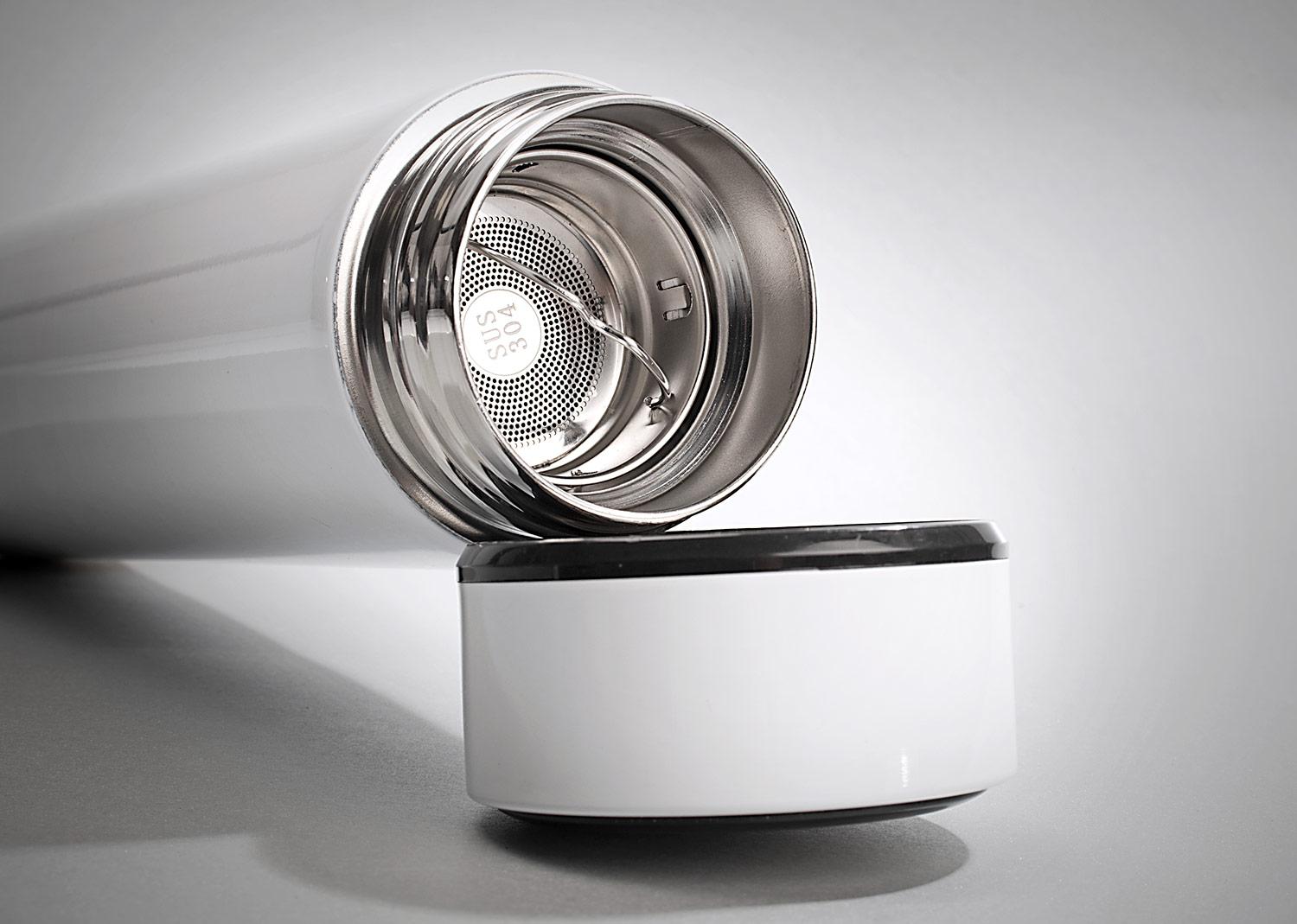 Termo Vacuum de acero inoxidable con doble pared, disenado para conservar la temperatura de tus bebidas por mas tiempo. Su estilo moderno se complementa con un cierre giratorio seguro, una base de corcho natural que protege las superficies y evita deslizamientos, y un filtro interno ideal para preparar infusiones o bebidas con ingredientes naturales. Una opcion funcional y elegante para el dia a dia. Capacidad: 430 ml / 14 Oz || Material: Acero Inoxidable, Corcho || Tamaño: Diámetro de 4.6 cm