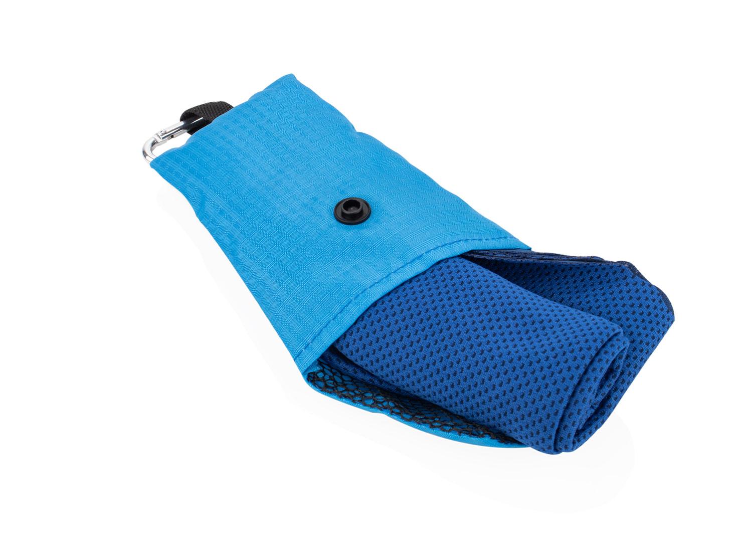 Practicidad y diseno en un solo producto. Esta toalla (39,5 X 39,5) viene acompanada de un estuche compacto con gancho carabinero, ideal para colgar en tu mochila o equipo deportivo. El estuche cuenta con bolsillo trasero, malla que permite ver el interior y cierre a presion, ofreciendo comodidad y ventilacion. Ademas, incluye un sistema que permite prender o desprender la toalla facilmente. La toalla destaca por sus dos estampados diferentes en cada lado, brindando estilo y versatilidad para tus actividades al aire libre, gimnasio o viajes. ¡Ligera, funcional y lista para acompanarte donde vayas || Material: Poliéster || Tamaño: 9.6 cm de ancho x 11.6 cm de alto