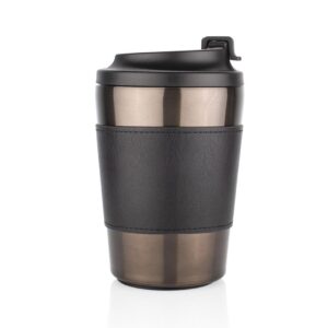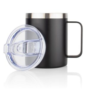 Mug fabricado en acero inoxidable con doble pared y aislamiento termico tipo Vacuum, que ayuda a conservar la temperatura de las bebidas por mas tiempo. Cuenta con base antideslizante para mayor estabilidad y tapa de cierre giratorio con sistema de seguridad en la boquilla, que se activa mediante presion, evitando derrames accidentales. Ideal para bebidas calientes en movimiento. Capacidad: 500 ml / 17 Oz || Material: Acero Inoxidable y tapa en PP || Tamaño: Diámetro de 6 cm