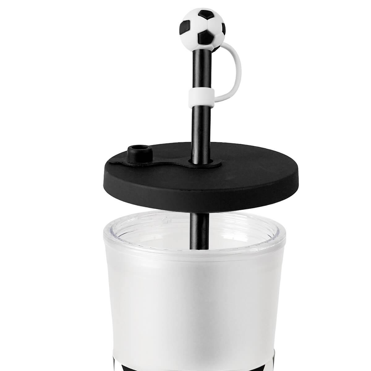 Vaso doble pared de plastico. Acabado frosty suave al tacto y tapa de rosca. Cuenta con popote de plastico reutilizable y tapon de silicon en forma de balon. Su original diseno con manga de silicon antideslizante, garantiza un agarre comodo y seguro. Capacidad 23 Oz. Base de 6.4 cm de diametro. Caja individual incluida || Material: Plástico / Silicón || Tamaño: 10 x 20.5 cm